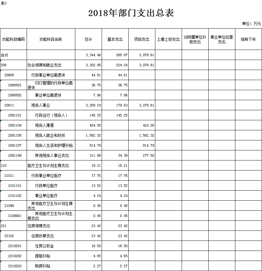 按照支出功能分类科目,主要用于:社会保障和就业支出3,302.85万元;医疗卫生支出18.21万元;住房保障支出23.42万元。