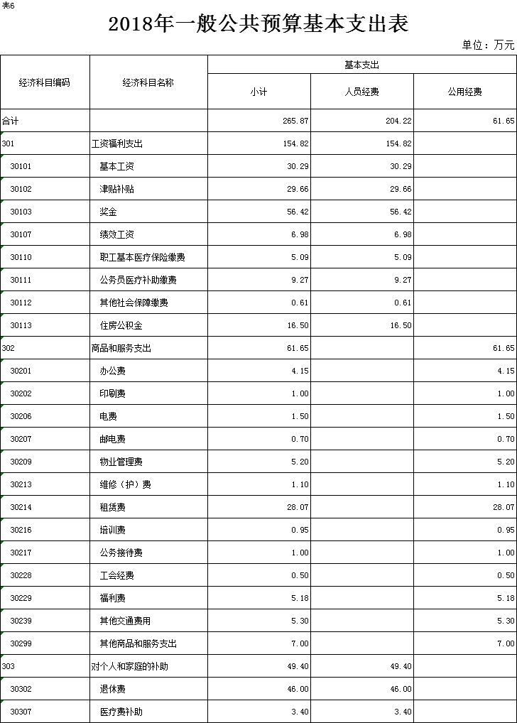 (一)基本支出265.87万元,较2017年年初预算增加42万元,增长18.76%,主要原因是新增一个全额拨款事业单位。主要用于: