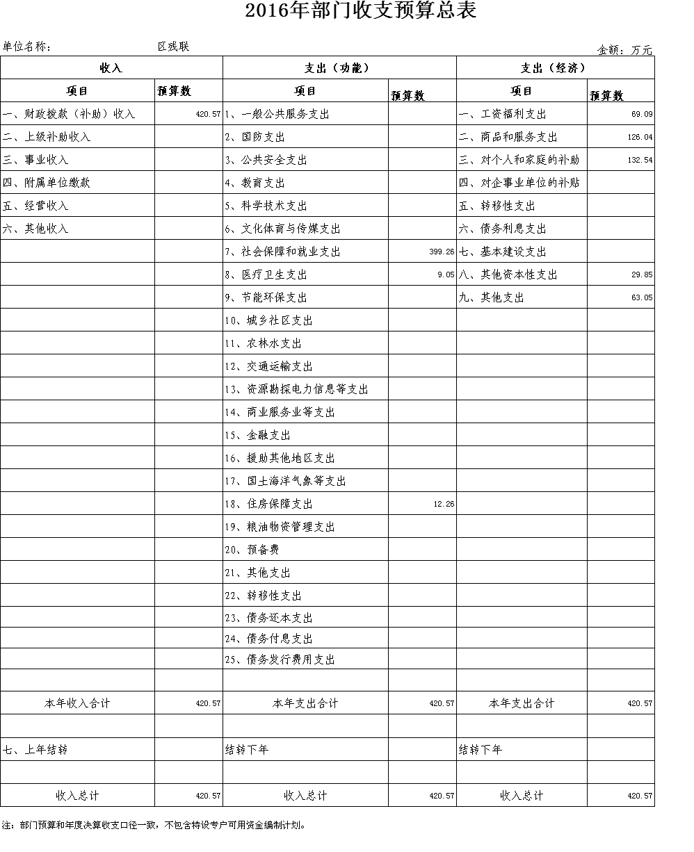 2016年部门收支预算总表