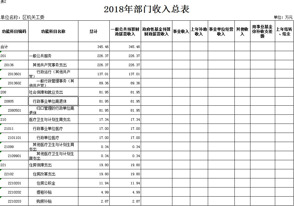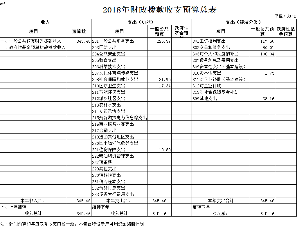 2018年部门预算总收入345.46万元,较2017年年初预算增加13.3万元,增长4%。