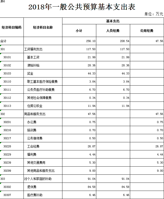 (一)基本支出256.1万元,较2017年年初预算增加 0.8万元,增长0.3%。