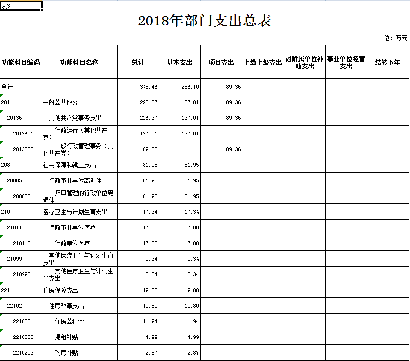 一般公共服务支出226.37万元;社会保障和就业81.95万元,医疗卫生与计划生育支出17.34万元,住房保障支出19.8万元。
