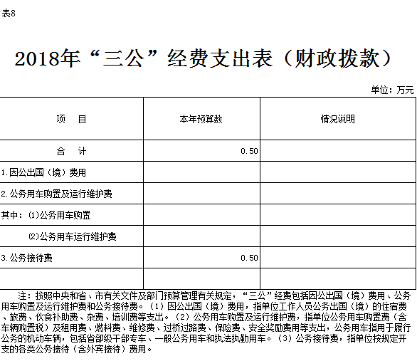 2018年部门预算及“三公”经费财政拨款预算公开情况说明