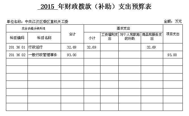 区直机关工委2015年财政拨款(补助)支出预算表