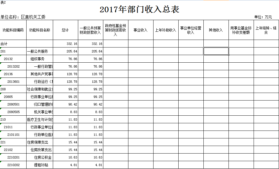 2017年部门预算总收入332.16万元。较2016年年初预算增加24.96万元,增长8%。其中:财政拨款(补助)收入332.16万元。