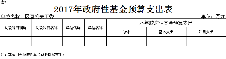 区直机关工委因公出国(境)费、公务接待费、公务用车购置及运行维护费开支单位包括本级(无下属事业单位)。