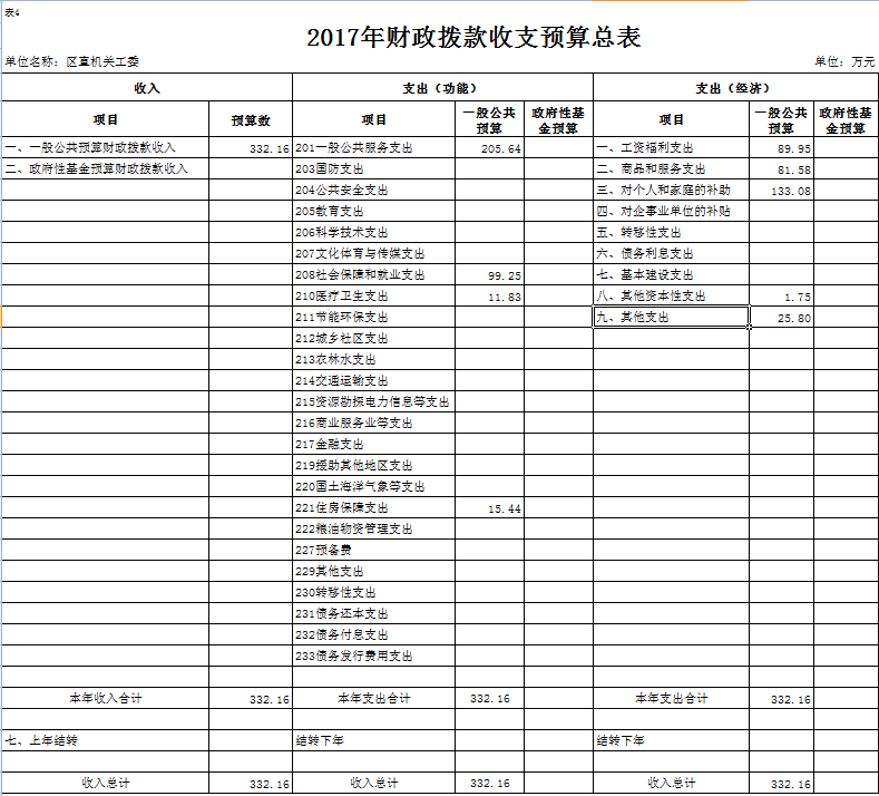 2017年财政拨款(补助)预算数332.16万元,安排情况如下: