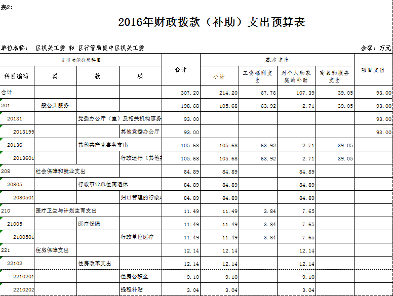 2016年财政拨款(补助)预算数307.2万元,安排情况如下: