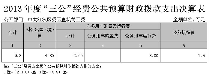 2013年度“三公”经费财政拨款支出决算为9.3万元。