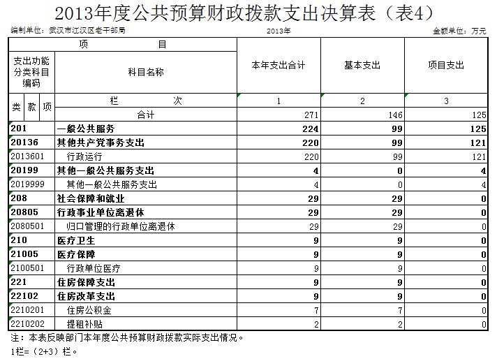 酒店偷拍 老干部局2013年公共预算财政拨款支出年度预算为334万元(包括年初部门预算、基本建设资金、上级下达的专项转移支付资金及年初结转和结余资金等支出),支出决算为271万元,完成年度预算的81%。其中:基本支出 146万元。项目支出125万元。