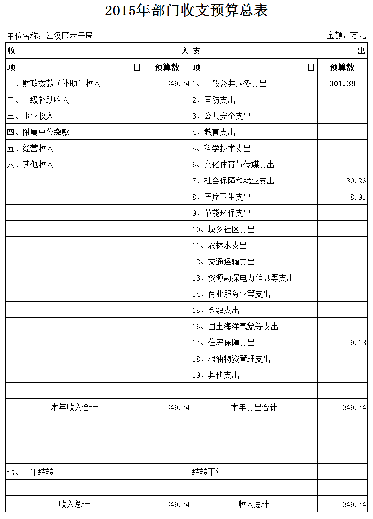 2015年部门收支预算总表