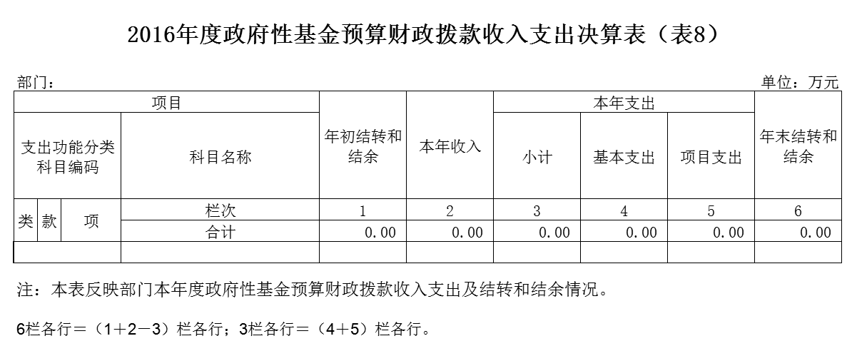八、2016年度政府性基金预算财政拨款收入支出决算情况