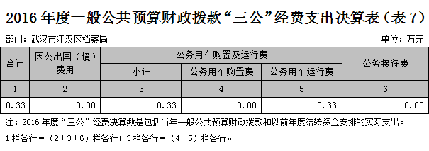 七、一般公共预算财政拨款"三公"经费支出决算表(表7)