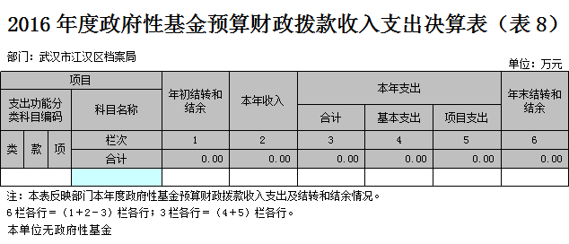 八、政府性基金预算财政拨款收入支出决算表(表8)