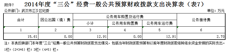2014年度“三公”经费财政拨款支出决算为15.61万元。