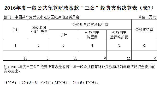 2016年度"三公"经费财政拨款年度预算为11万元,支出决算为11万元,完成预算的100%。其中:
