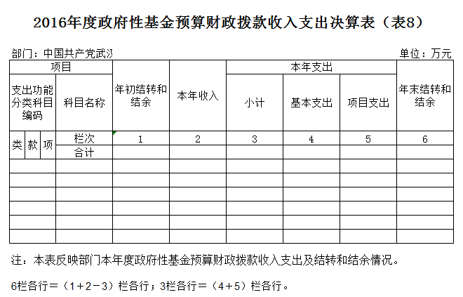 八、政府性基金预算财政拨款收入支出决算表(表8)