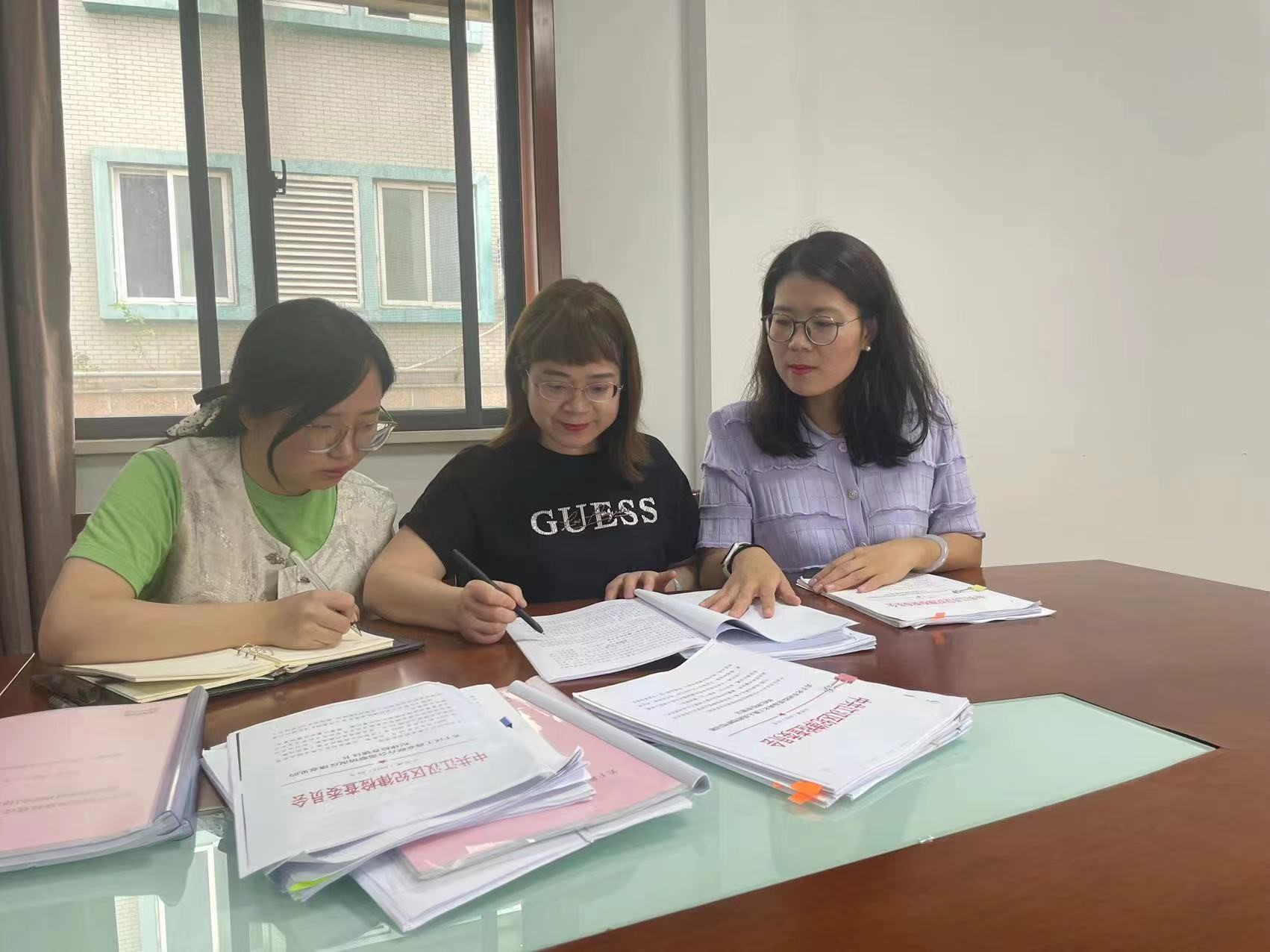 图为案件审理室干部研究纪检监察建议书的评查工作