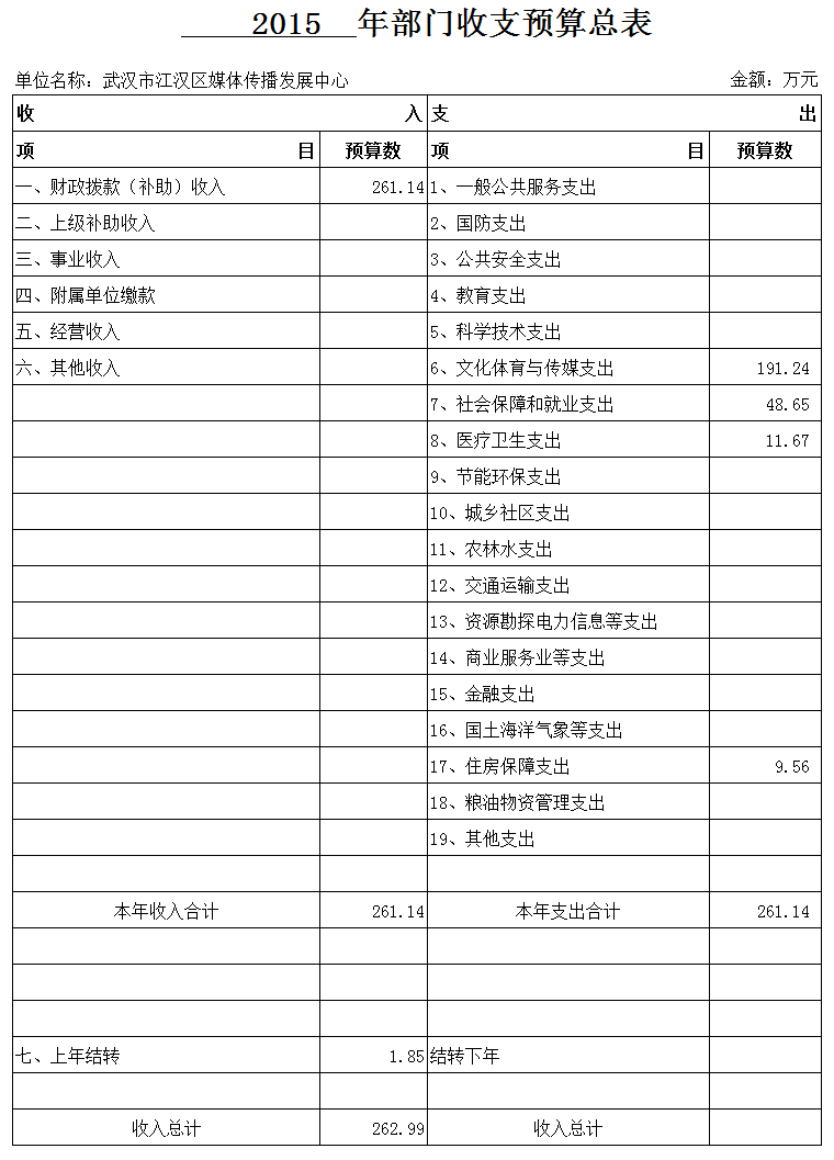 酒店偷拍 媒体传播发展中心2015年部门收支预算总表