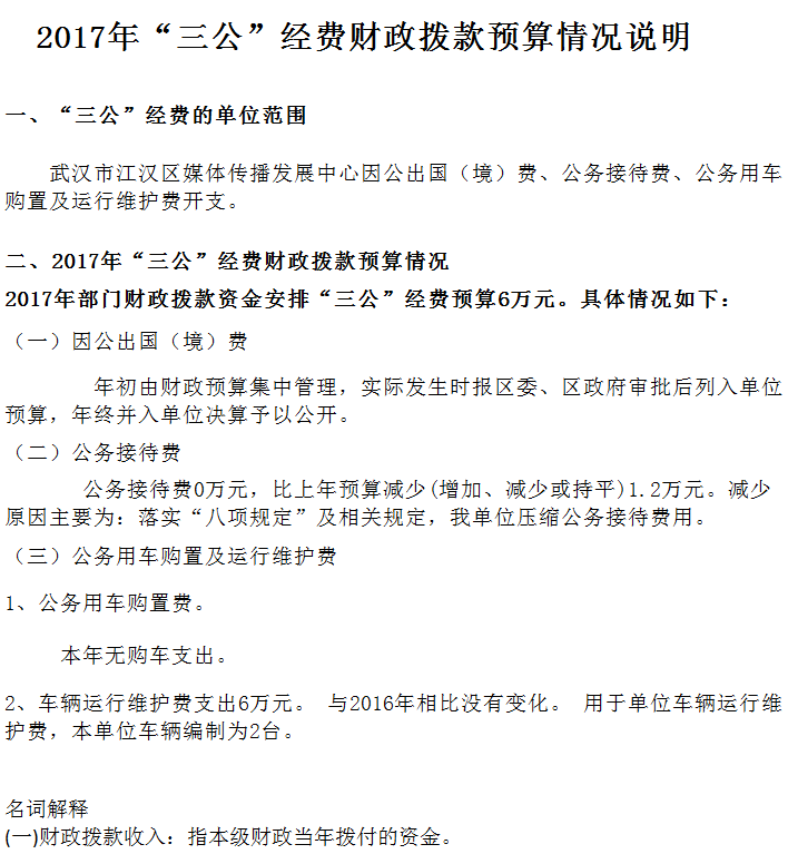 (五)机关运行经费:行政单位和参照公务员法管理的事业单位为保障单位运行使用一般公共预算财政拨款安排的基本支出中的日常公用经费支出。包括办公及印刷费、邮电费、差旅费、会议费、福利费、日常维修费、专用材料及一般设备购置费、办公用房水电费、办公用房取暖费、办公用房物业管理费、公务用车运行维护费以及其他费用。