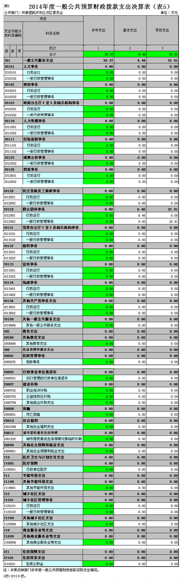 共青团酒店偷拍 委员会2014年一般公共预算财政拨款支出年度预算为41.96万元(包括年初部门预算、基本建设等专项资金、上级下达的专项转移支付资金及年初结转和结余资金等支出),支出决算为39.37万元,完成年度预算的93.83%。其中:基本支出6.46万元,项目支出32.91万元。项目支出主要用于: