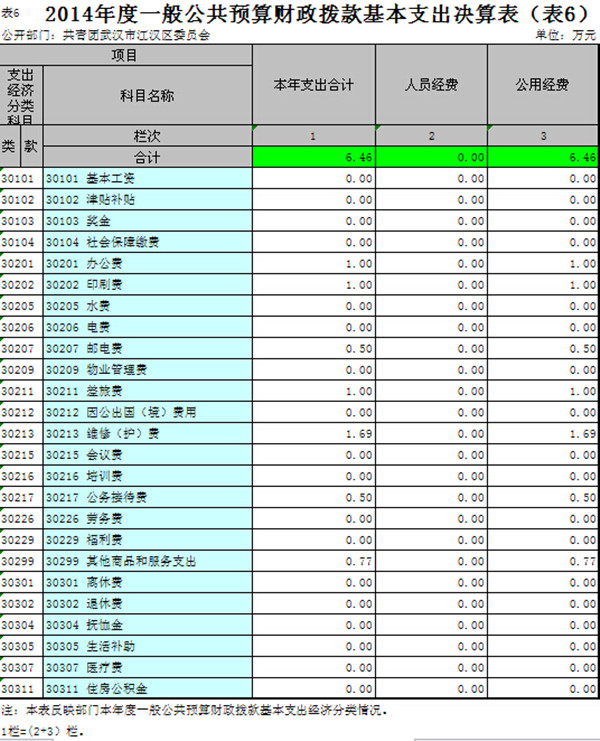 共青团酒店偷拍 委员会2014度一般公共预算财政拨款基本支出6.46万元,其中,公用经费6.46万元,主要包括:办公费、印刷费、咨询费、手续费、水费、电费、邮电费、取暖费、物业管理费、差旅费、因公出国(境)费、专用维修(护)费、租赁费、会议费、培训费、公务接待费、专用材料费、被装购置费、专用燃料费、劳务费、委托业务费、工会经费、福利费、公务用车运行维护费、其他交通费用、税金及附加费用、其他商品和服务支出、办公设备购置、专用设备购置、信息网络及软件购置更新、其他资本性支出。