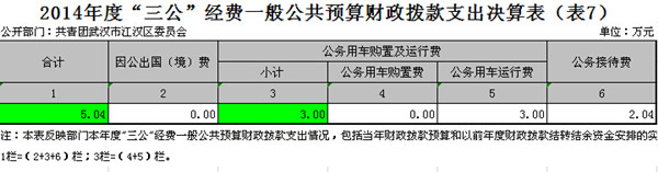 2014年度“三公”经费财政拨款支出决算为5.04万元。