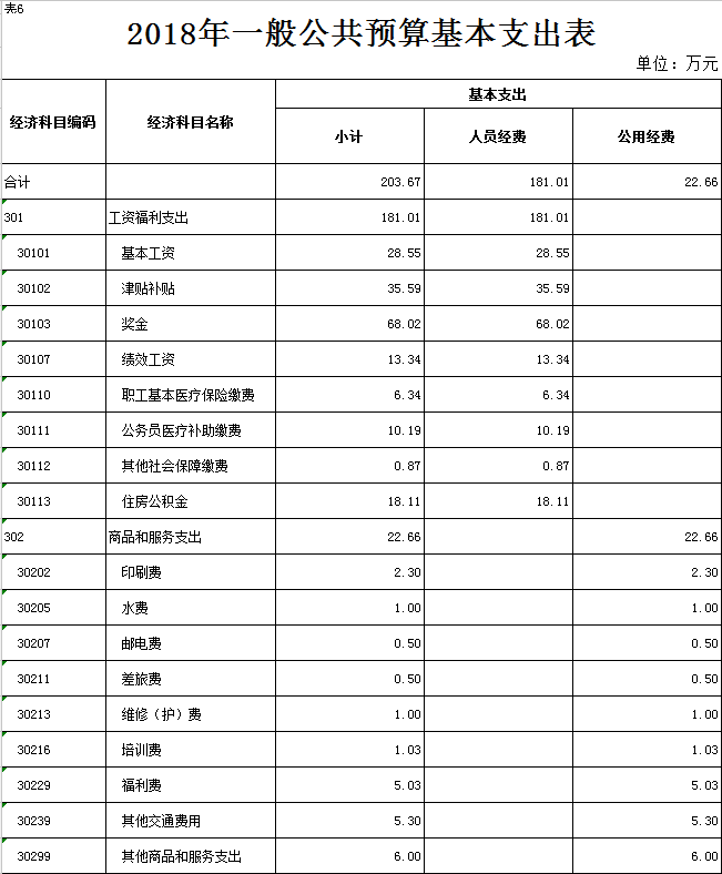 (一)基本支出203.67万元,较2017年年初预算增加60.63万元,增长43.39%,主要原因是:在职人员工资支出指标改下到各单位。