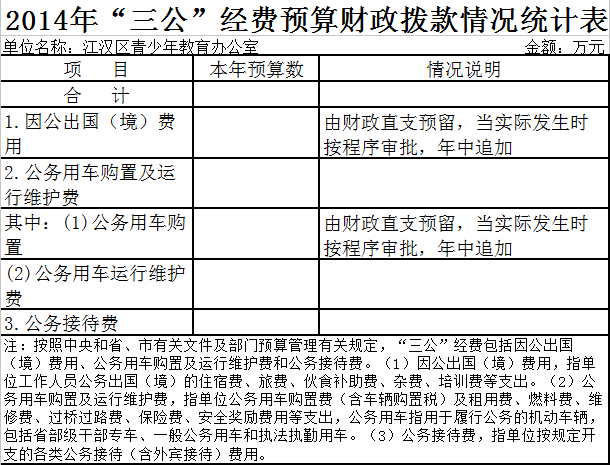 青少年教育办公室2014年“三公”经费财政拨款预算情况说明