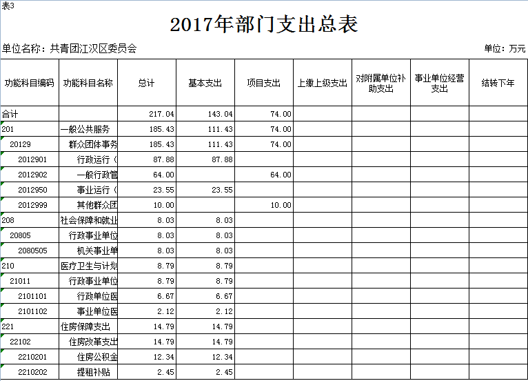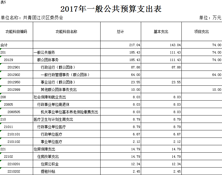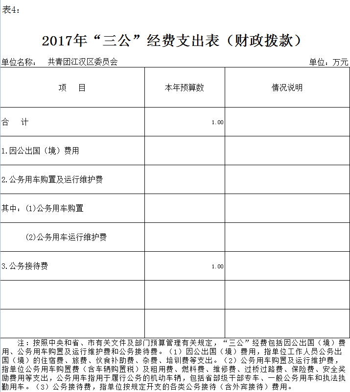 2017年江汉团区委部门预算(及“三公”经费)公开说明