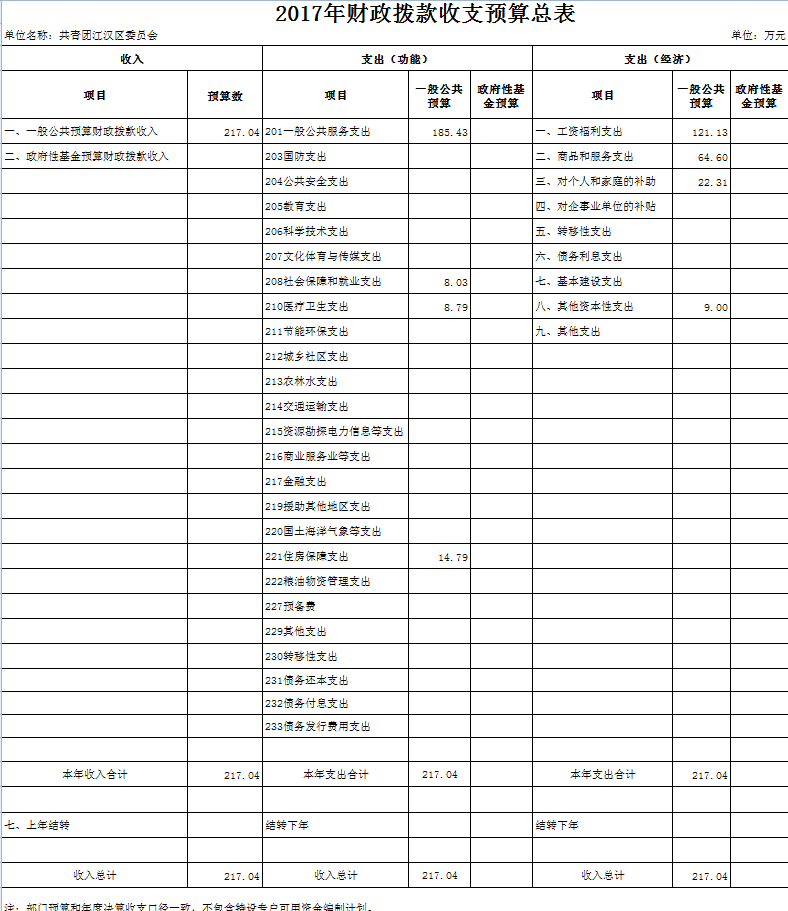 2017年财政拨款(补助)预算数217.04万元,安排情况如下: