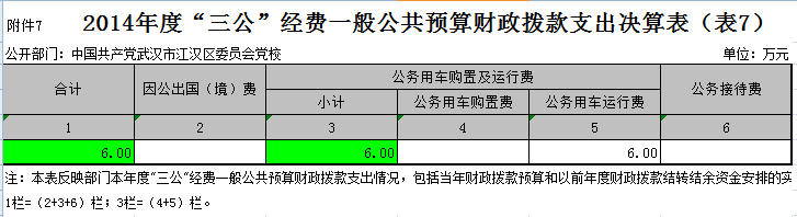 七、2014年度一般公共预算财政拨款“三公”经费支出决算表(表7)