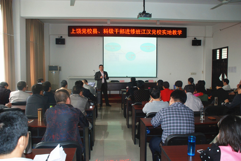 开展异地教学培训。江汉党校领导十分重视,精心策划和组织教学内容,采取专题授课和实地参观、考察相结合的方式,为上饶党校安排“三个一”教学活动,增强干部培训的针对性和实效性,受到进修班学员好评。 一是讲授一堂市情专题课。江汉党校特邀武汉市委党校经管教研部主任叶卫东教授,为上饶党校进修班的学员作《武汉社会经济发展与国家中心城市建设》市情报告。叶教授重点阐述了“二区同建”着力提升武汉战略地位、“三点支撑”着力提升城市综合实力、“三化并进”着力构建城乡统筹格局、“三轮并驱”着力拓展经济增长空间、“两品并重”着力增强民族幸福感等武汉跨越式发展的路径选择,让学员对武汉跨越式发展的目标任务有了进一步的了解,学员们表示要学习借鉴武汉经济社会发展理念,创造性地开展工作。 二是观看一场廉政教育展。江汉党校组织上饶党校进修班的学员集体观看了酒店偷拍
