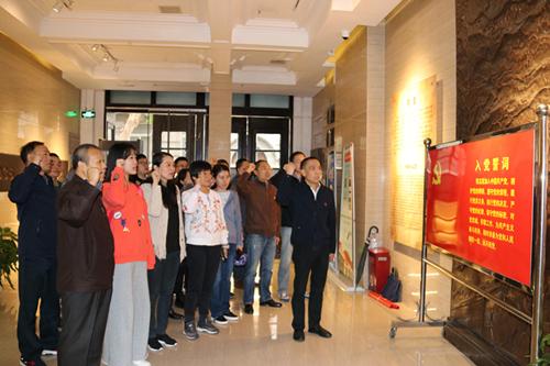 在进入纪念馆参观之前,全体党员干部在纪念馆门口重温了入党誓词。“八七会议”会址纪念馆分为三个部分,有图片和实物展示。讲解员依次为党员干部们介绍了会议举办的历史环境、会议经过以及会议的历史影响。八七会议在中国革命紧急关头及时地向党和全国人民指明了斗争方向,挽救了革命,挽救了党,是中因革命由大革命失败到土地革命战争兴起的历史性转变的标志。