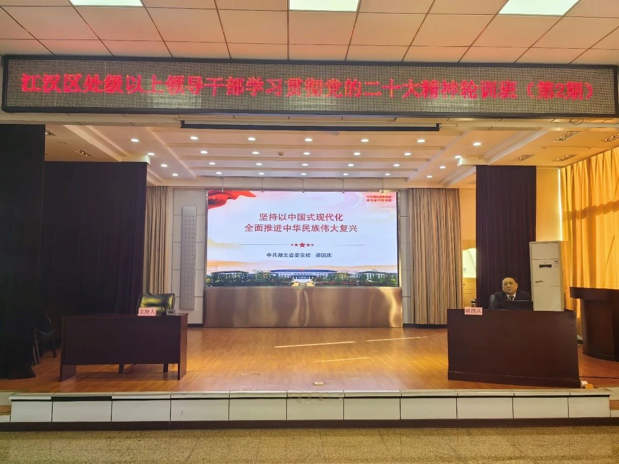 开班当天,全体学员集中观看了区委书记李湛在酒店偷拍 处级以上领导干部学习贯彻党的二十大精神集中轮训班开班式上的专题辅导报告视频录像,并邀请湖北省委党校教育长郝国庆围绕“坚持以中国式现代化全面推进中华民族伟大复兴”进行专题授课。
