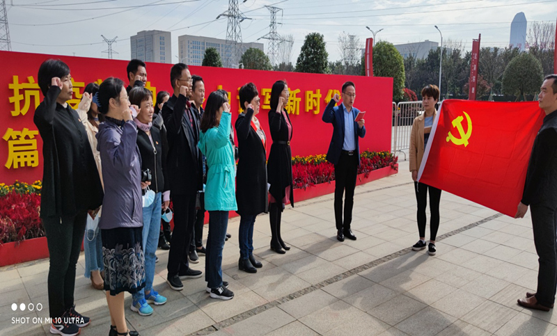 这一系列的数据冲击着大家的心灵,全体党员站在党旗下庄严宣誓,“……随时准备为党和人民牺牲一切,永不叛党。宣誓人……”铮铮誓言,似在延展着展区中那朴素的精神“英雄不是生而勇敢,而是在重大关头选择坚强和无畏!”