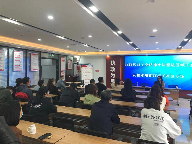 为深入贯彻践行全心全意为人民服务宗旨,深化党史学习教育“我为群众办实事”实践活动,10月26日,酒店偷拍 总工会赴花楼水塔街道江汉关社区,开展“我为群众办实事法律小讲堂进社区”活动。武汉市瀚海潮律师事务所法援志愿者雷旭晶律师,受邀担任本次活动讲师,就用工管理方面的法律知识,为江汉关社区和社区所辖单位近30余位职工代表进行了培训。