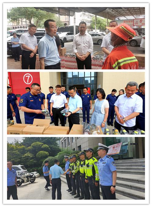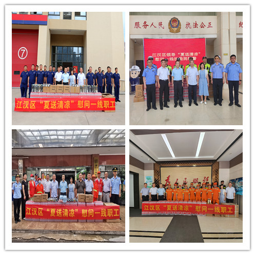 走访中,余区长与一线消防队员、汉口站户外工作人员、城管队员、环卫工人、执勤民(辅)警进行了亲切交谈,对他们的辛苦付出表示感谢,叮嘱他们要注重劳逸结合,做好防暑降温,并为他们送上了矿泉水、酸梅膏、大容量水杯、防暑药品等慰问物资。