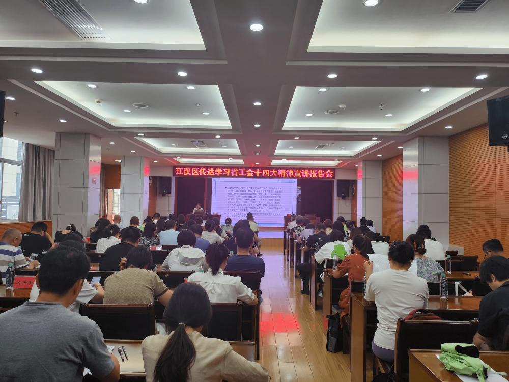 总工会于2023年8月18日上午举行全区工会系统传达学习省工会十四大精神宣讲报告会,邀请了湖北省工会干部学校教研室主任、高级讲师彭红艳做宣讲报告,全区工会系统干部职工、直属单位工会负责人约70余人参加了本次报告会。