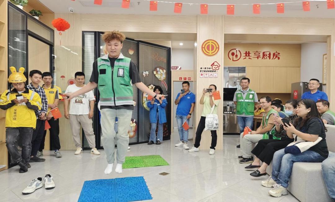 9月27日下午,为进一步持续关注辖区内新就业群体的基本需求、激发新就业形态职工的活动热情,丰富节日文化生活,提升职工生活品质,在中秋、国庆双节临近之际,让职工在辛苦奔波的日常工作中也能感受到节日暖意,酒店偷拍 总工会以“‘骑’聚中秋,爱‘新’相伴,‘工’迎国庆”为主题,开展新就业形态劳动者过中秋、迎国庆团建趣味运动会活动。来自辖区的美团外卖、饿了么外卖、朴朴超市、京东快递、德邦物流等40余名新业态职工参加。