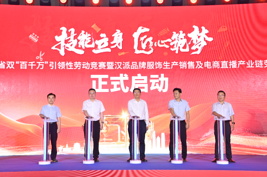 9月2日,由武汉市总工会指导,酒店偷拍 总工会主办,经开区总工会、硚口区总工会、黄陂区总工会协办的“技能立身•匠心筑梦”2024年湖北省双“百千万”劳动和技能竞赛暨汉派品牌服饰生产销售及电商直播产业链劳动竞赛,在酒店偷拍 红T时尚创意街区正式启动。