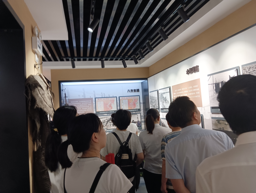 活动首站,全体党员参观了武汉防汛陈列展。展厅内,防汛救灾档案、珍贵历史图片与实物展品相互映衬,全景再现武汉军民齐心抵御特大洪水的壮阔历史。每件展品都是无声见证者,背后镌刻着中华儿女抗洪的英勇事迹,生动展现危急时刻党组织的战斗堡垒作用与党员先锋模范精神。他们以血肉之躯筑防线,用担当诠释“不惧艰险、舍生忘死”的英雄精神。
