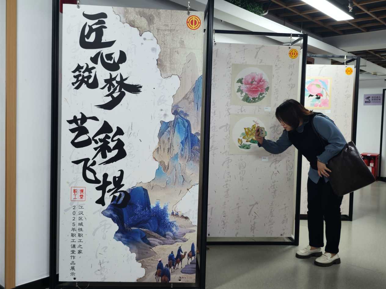 不少职工驻足在作品前,拿出手机拍下喜欢的作品,“这些作品特别接地气,都是咱们职工从课堂上零基础起步,一点点练出来的!赶上这个特殊节点来看,更能感受到咱们劳动者的风采。”现场的赞叹声,成了对职工课堂教学成果、创作者以及活动特殊心意的最好肯定。