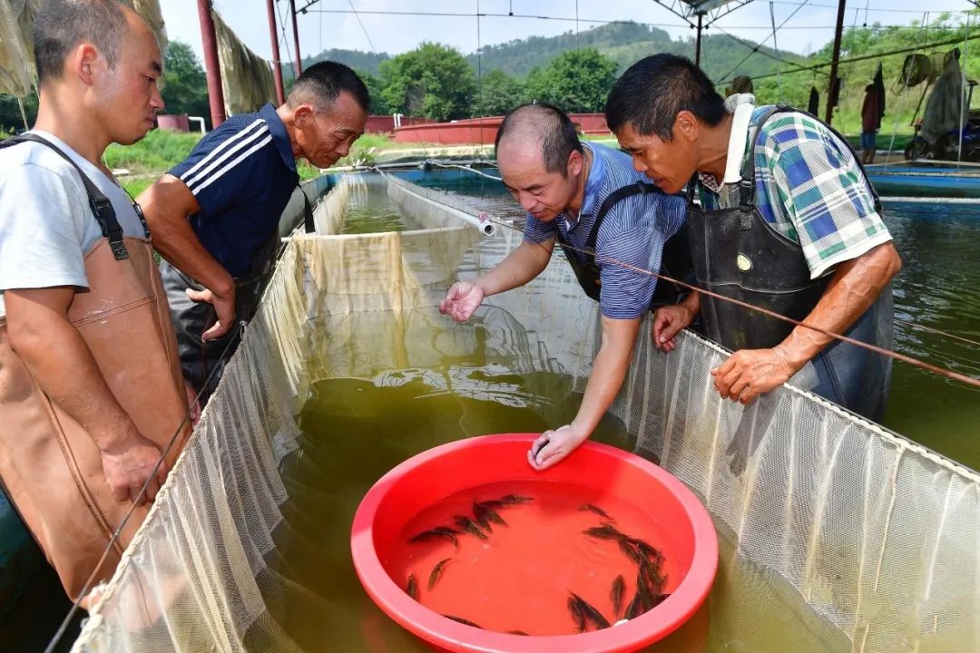 创造村的生态优势,也在产业发展中逐渐彰显。今年4—8月份育苗高峰期,院基寺水库和基地紧密衔接,按照育苗期所需最佳用水量开放闸道,助力鳜鱼苗的顺利孵化。