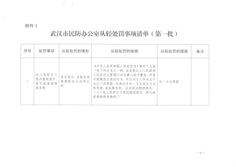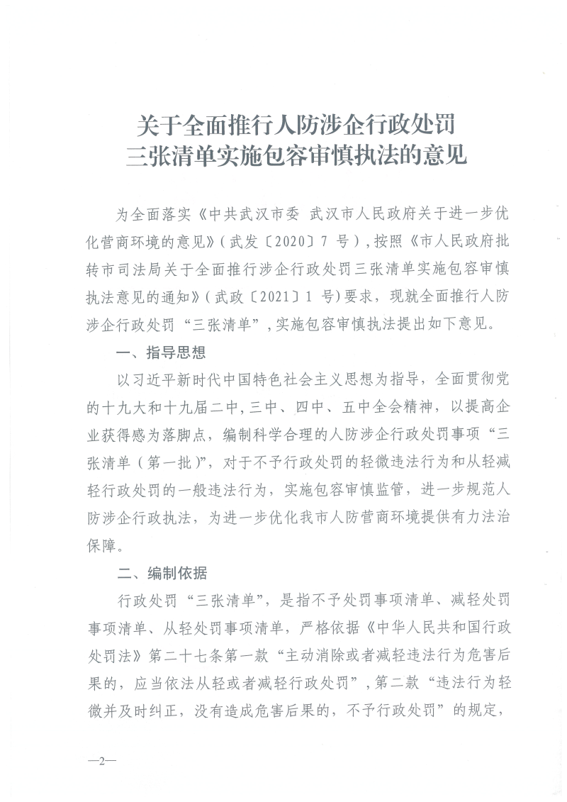 | 标 题 | 武汉市民防办公室关于全面推行人防涉企行政处罚三张清单实施包容审慎执法的意见 | ||