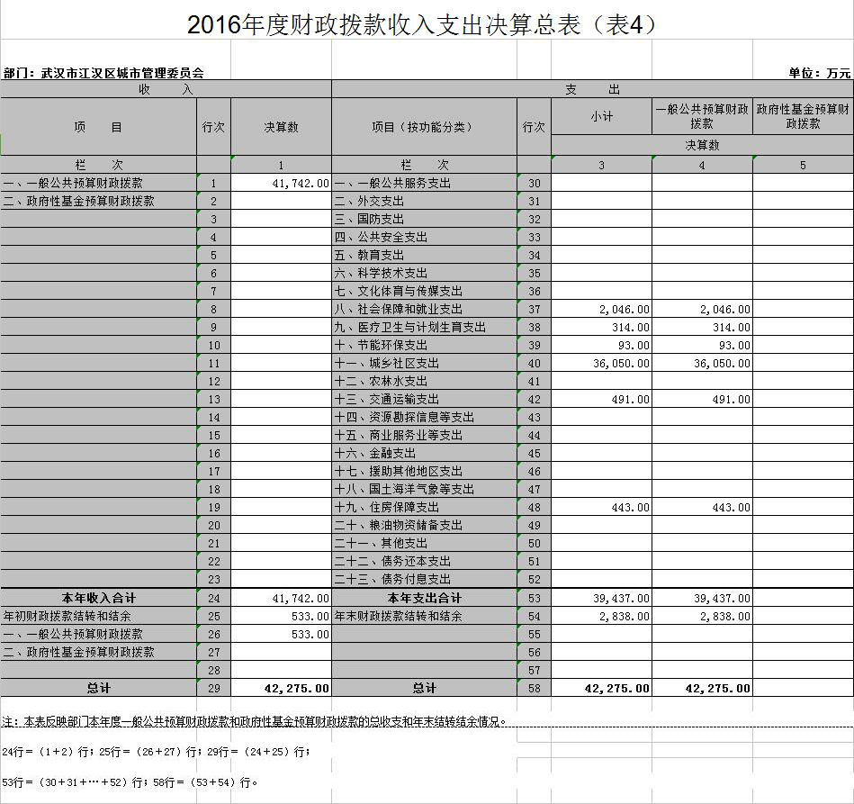 四、财政拨款收入支出决算总表(表4)