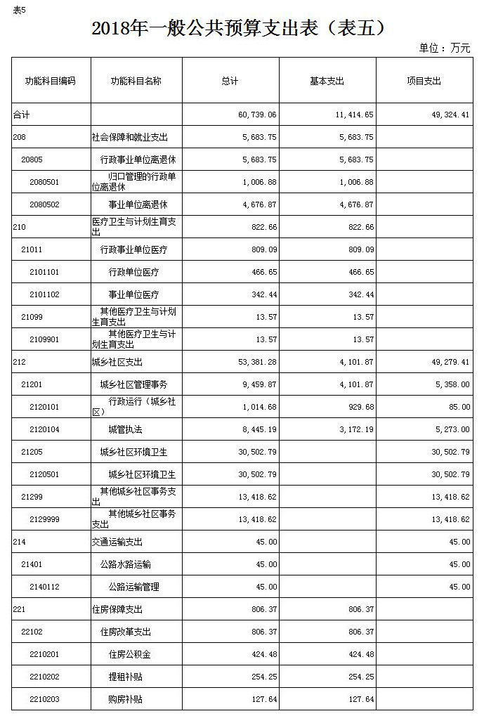 社会保障和就业5693.75万元;医疗卫生822.66万元;城乡社区事务53581.28万元;交通运输45万元;住房保障支出806.37万元。