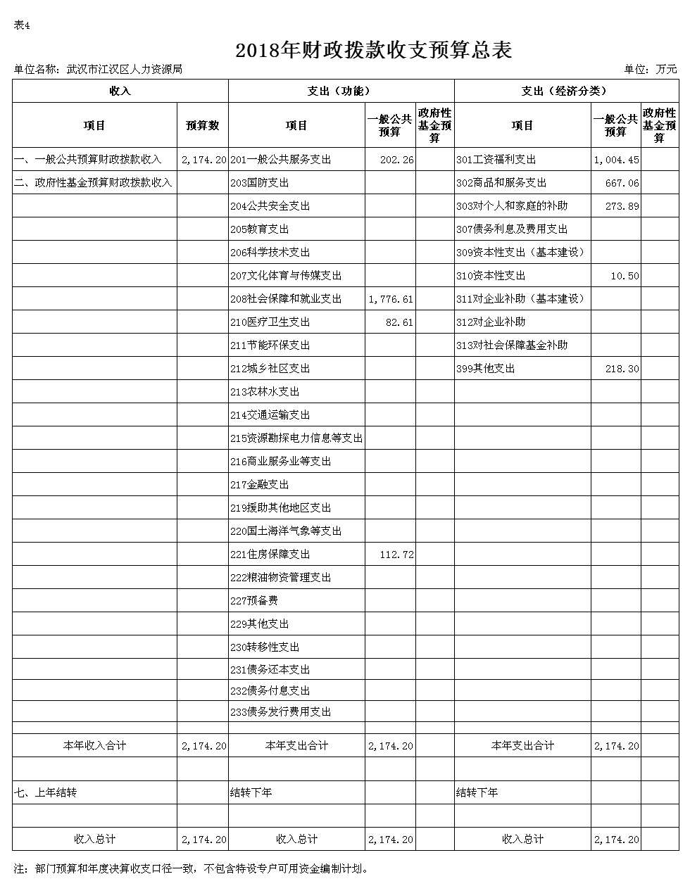 2018年一般公共预算财政拨款(补助)预算数2,174.20万元,安排情况如下: