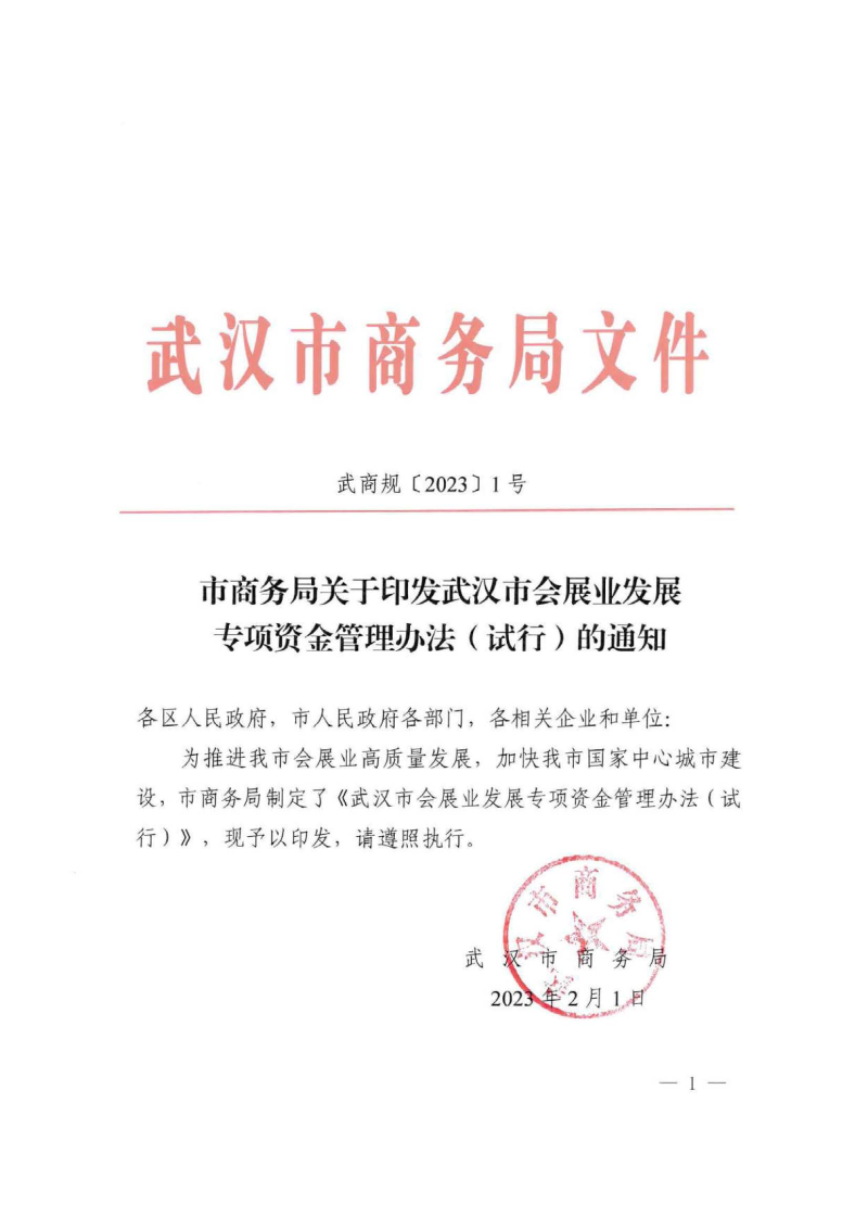 | 文 号 | 武商规[2023]1号 | 发文日期 | 2023-02-01 16:45 |