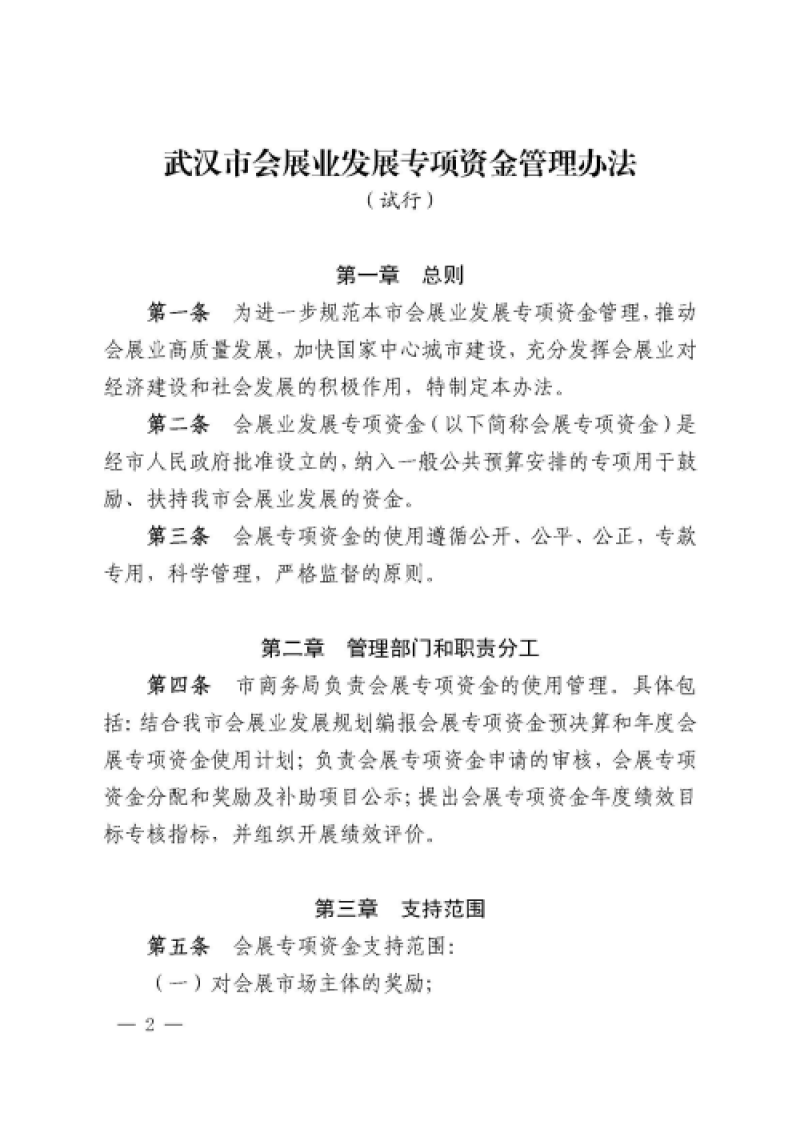 | 标 题 | 市商务局关于印发武汉市会展业发展专项资金管理办法(试行)的通知 | ||
